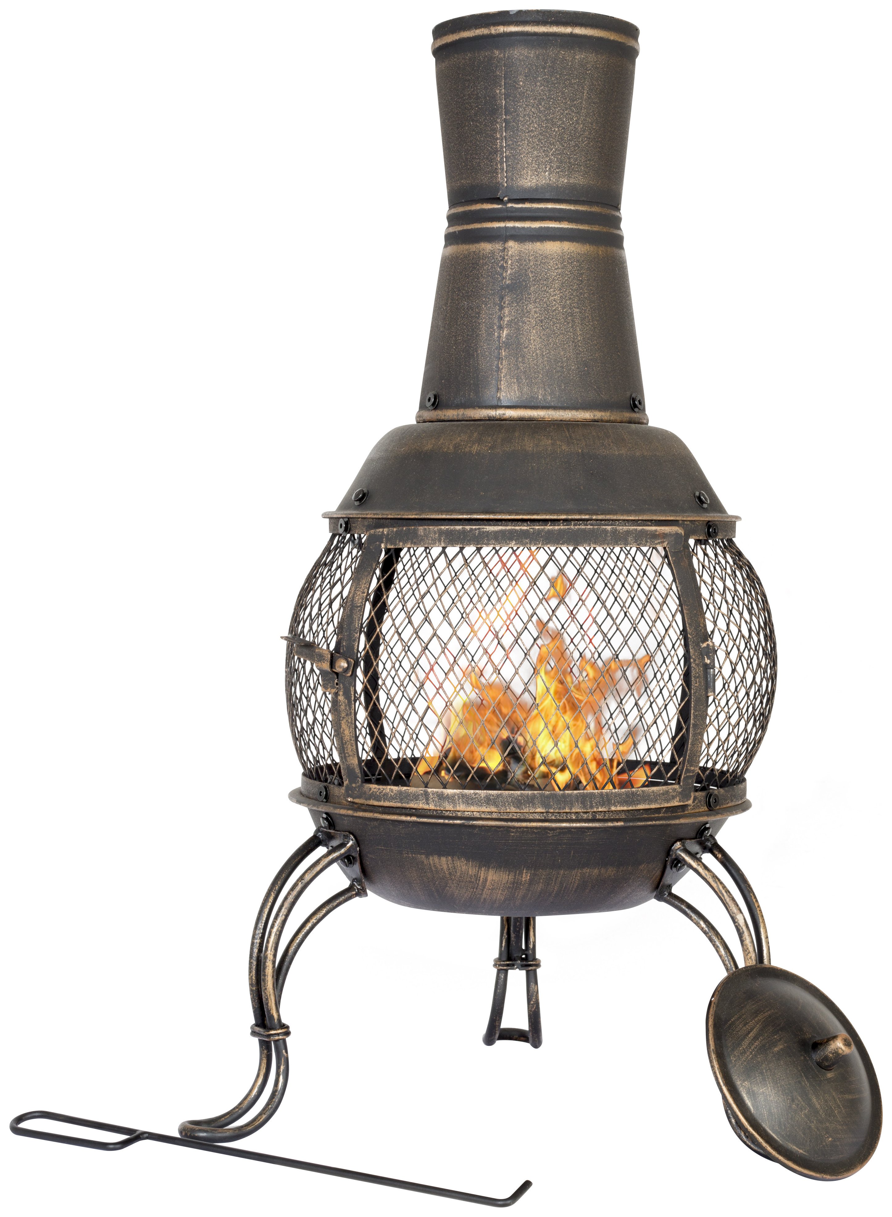 Explore our range of steel chimineas, available in many sizes, styles, and designs to suit your garden or patio. You'll find a mix of traditional and modern chiminea styles. Some models include integrated grills for outdoor cooking or additional storage options for firewood, adding to their functionality.