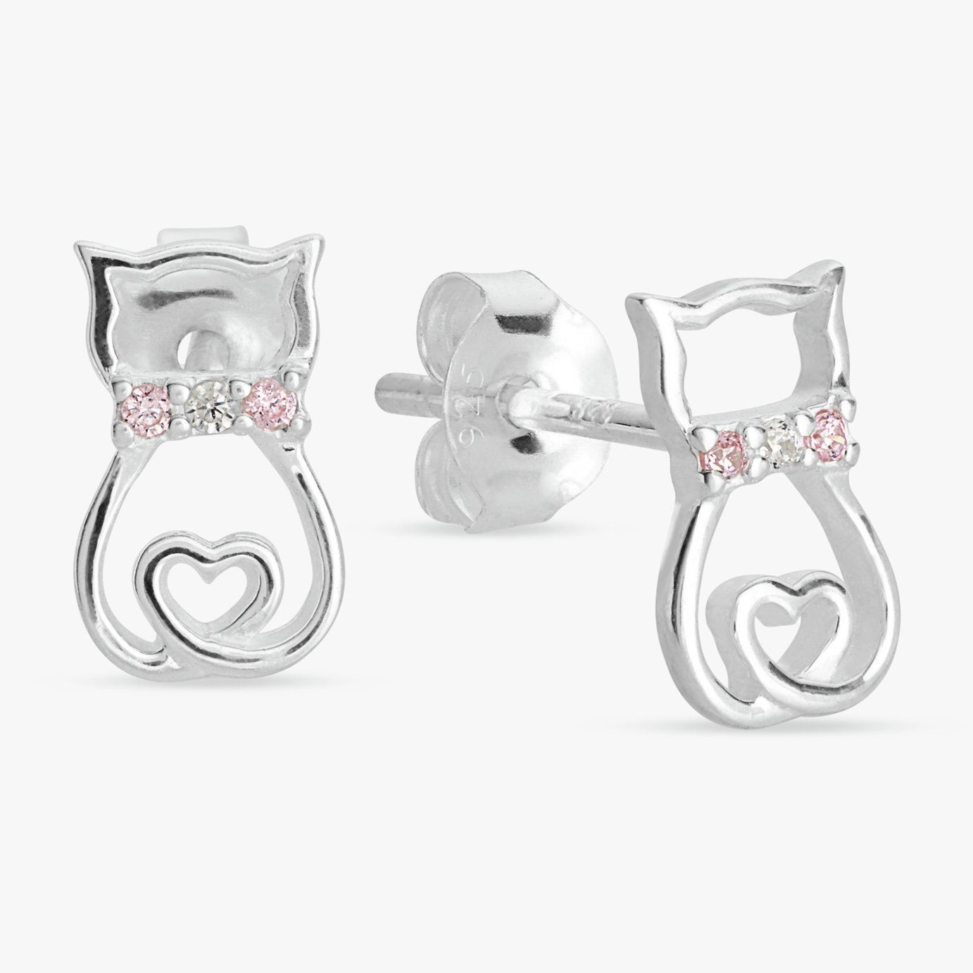 Revere Sterling Silver Pink Stone Cat Stud Earrings