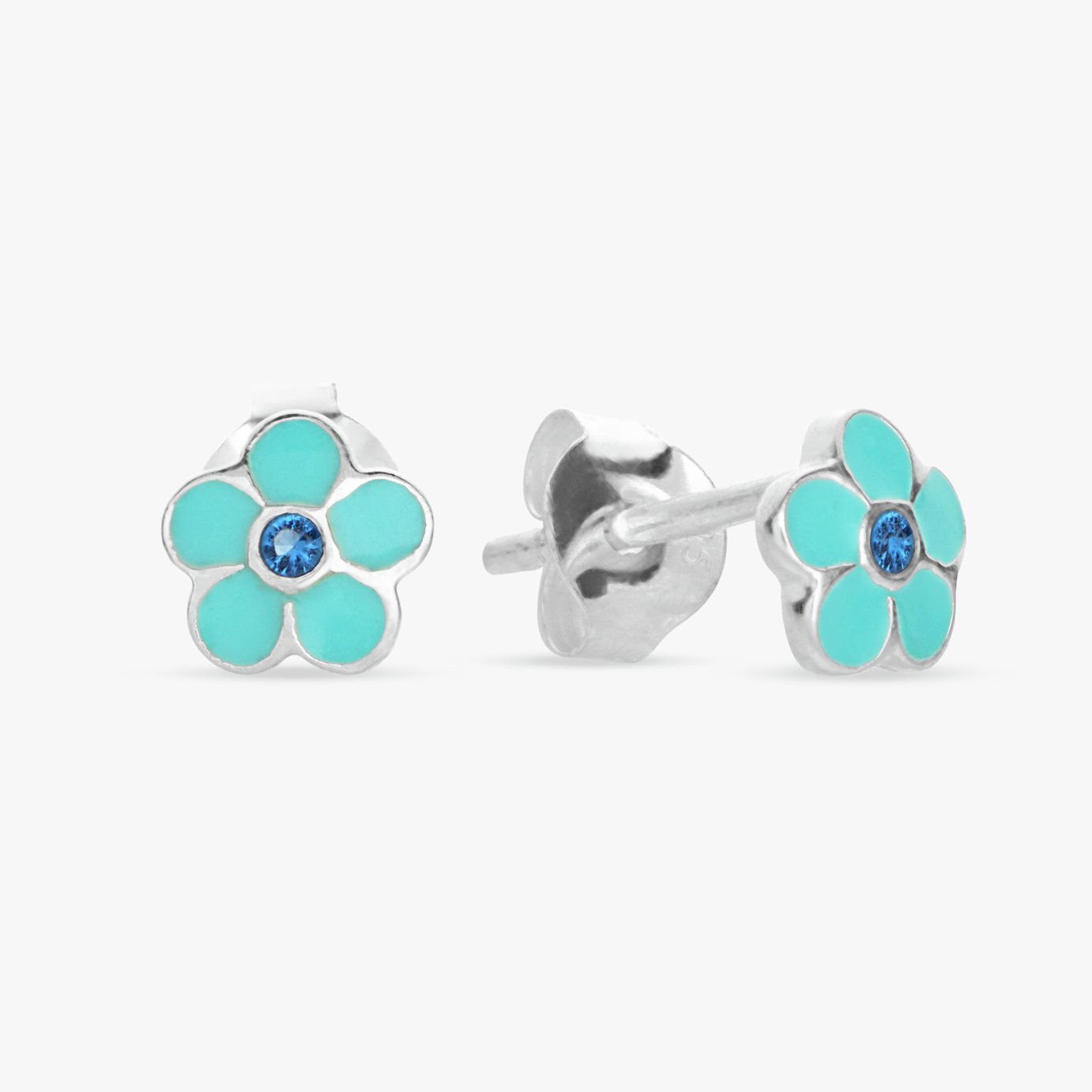 Revere Sterling Silver Blue Enamel Flower Stud Earrings