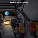 One-touch night light offers over 250 colour choices, Glow-on-ceiling projector, Pre-programmed with 10 stories, 10 classical tunes, 10 lullabies, and 10 natural sounds, Professional sleep training program by Apps, Record and upload your own voice, 2600mah rechargeable battery support up to 8-12 hours of use.