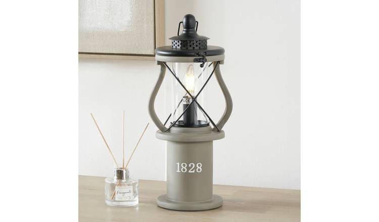 Pacific Gibson Antique Wood Lantern Table Lamp - Grey