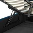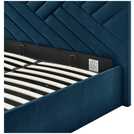 Lovely Luca. This glam bedframe is a stunner with its richly coloured plush velvet upholstery and herringbone-style ribbed headboard. Lots of character here. Simply lift the end to reveal plenty of hidden storage underneath. Ideal for tucking away seasonal clothes and spare linen. And rest assured, it's made with sprung wooden slats to comfortably support and ventilate your mattress.