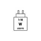 - The required output of a suitable charging device is 1W minimum and 18W maximum.