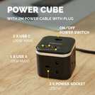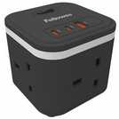 Fellowes 3 Socket 2m USB-A & USB-C Power Cube - Black