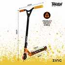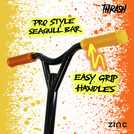 Built for young riders ready to take on their first tricks, the Thrash features a lightweight aluminium frame, ABEC 9 bearings and 100mm PU wheels for a fast, smooth ride. Pro-style seagull handlebars and a triple clamp give the control needed to master tail whips and bar spins. With a rear footbrake, anti-slip footplate and bold colourway, this is the perfect first step into the world of stunt scootering.