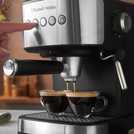 Enjoy a barista-style coffee in your own home thanks to the Russell Hobbs Everyday Stainless Steel Espresso Machine. With a brushed stainless-steel finish and white backlit buttons, it delivers coffee at the perfect pressure (automatically adjusting between 15 bar and 20 bar), with automated single & double shots from grounds or a delicious cupful from a capsule – compatible with Nespresso Original capsules.