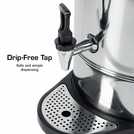This 20L stainless steel urn serves up to 80 cups - perfect for parties, offices or community events. The 2200W element heats water quickly while thermostat control maintains temperature. Features include a durable stainless steel finish that's easy to clean, concealed heating element for safety, and water level indicator to monitor refills, ideal for when the kettle doesn't quite cut it. Includes a 1-year guarantee.