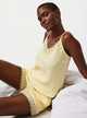 Yellow Lace Trim Double Cloth Pyjama Co-ord Shorts M