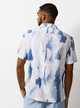 Brush Stroke Print Linen Short Sleeve Shirt XXXXL