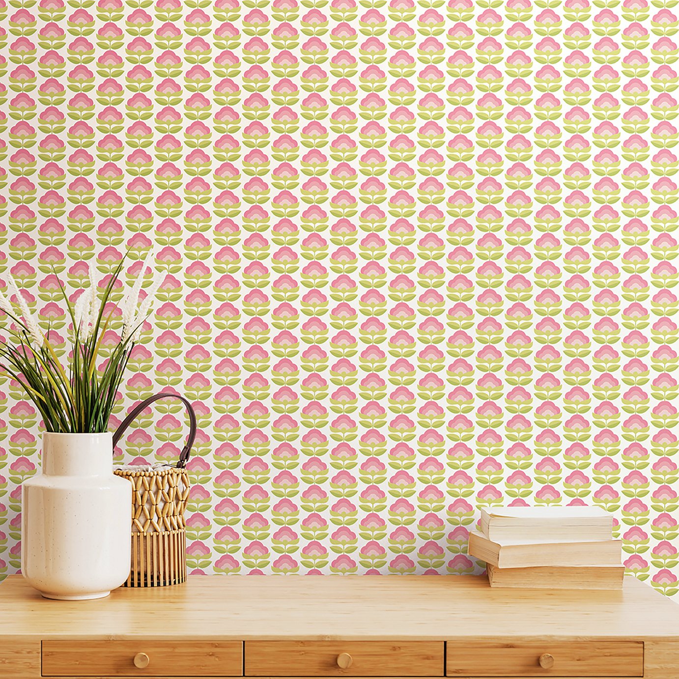 Hoopla Walls Retro Flower Rose and Apple Wallpaper