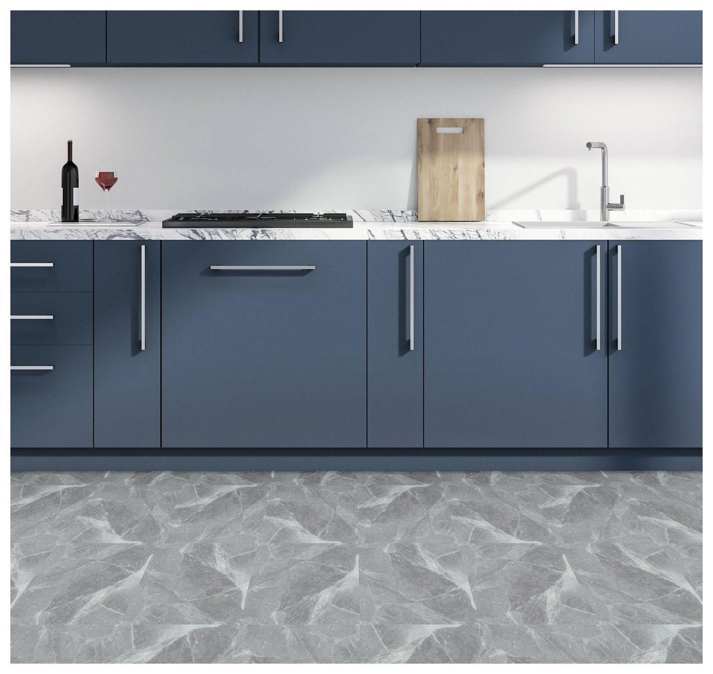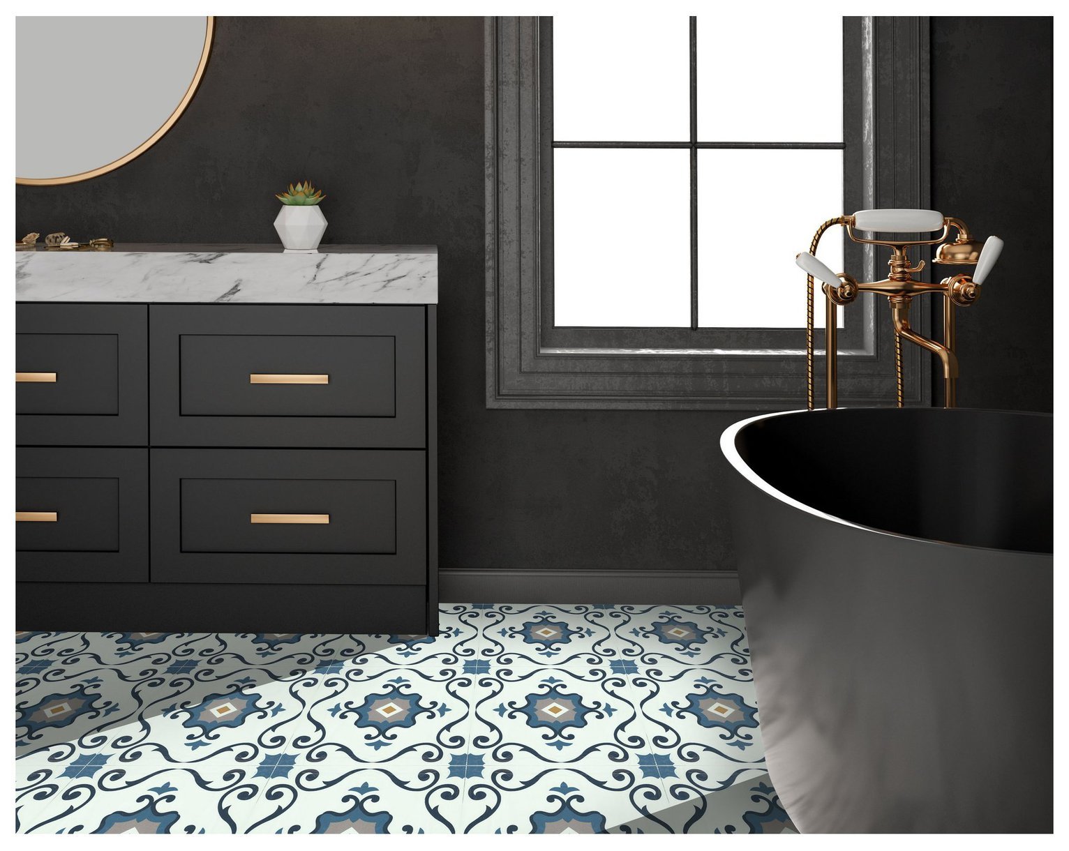 Arthouse Peel-and-Stick Floor Tile Motif Blue Wallpaper