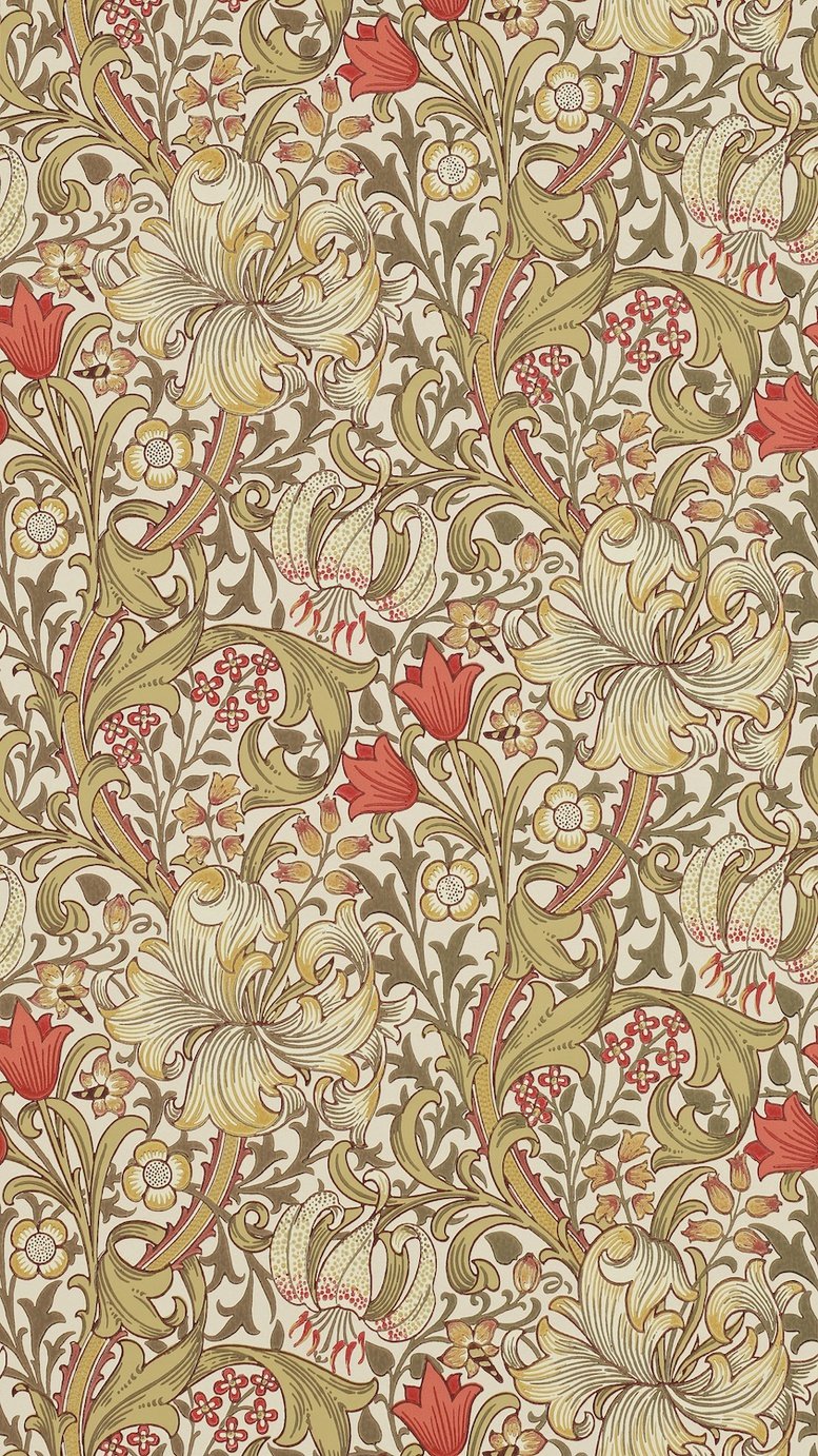 Morris & Co. Golden Lily Brown Floral Wallpaper