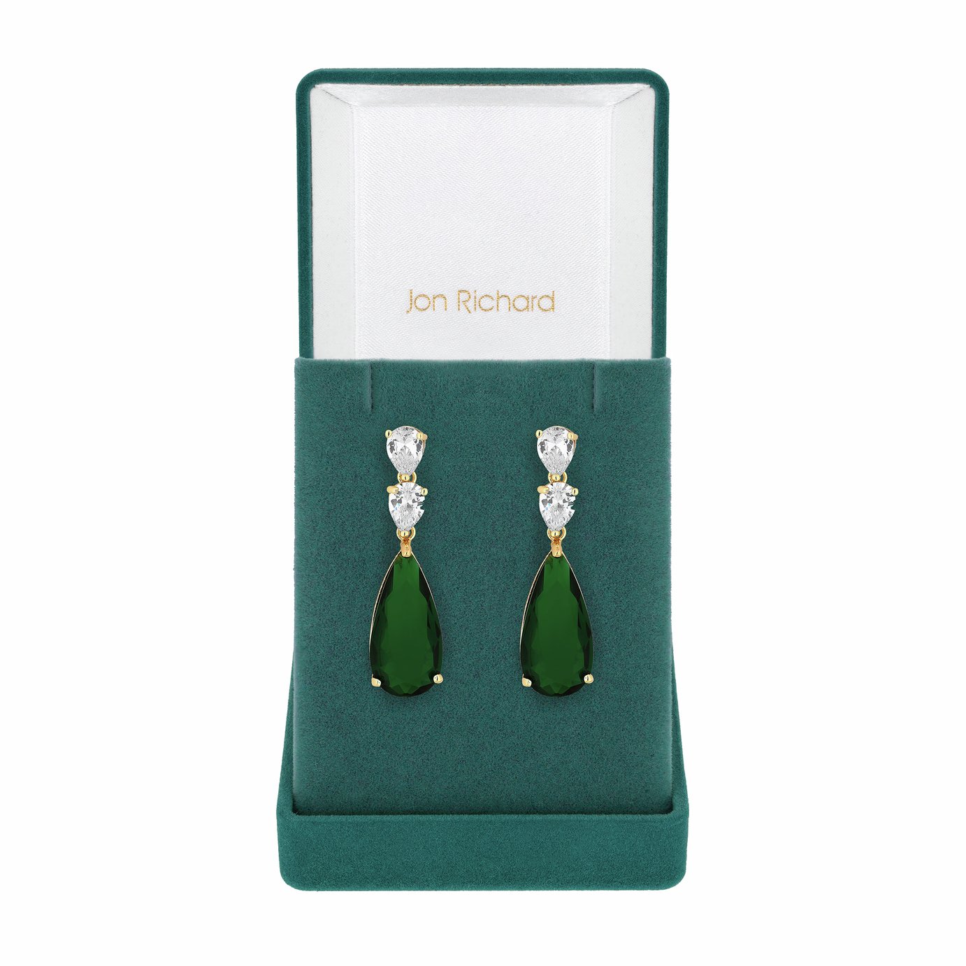 Jon Richard Gold Plated Crystal Emerald Drop Earrings