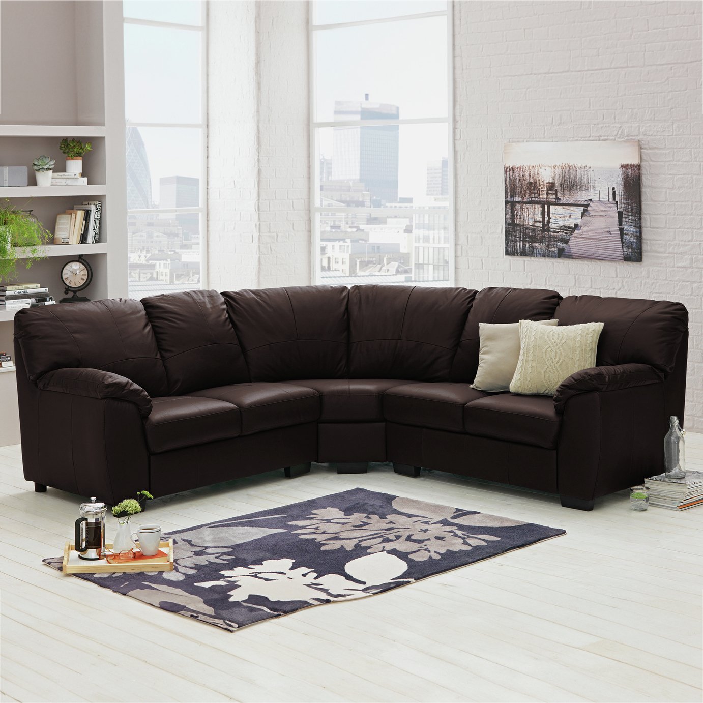 Argos Home Salisbury Leather RH Corner Sofa - Chocolate