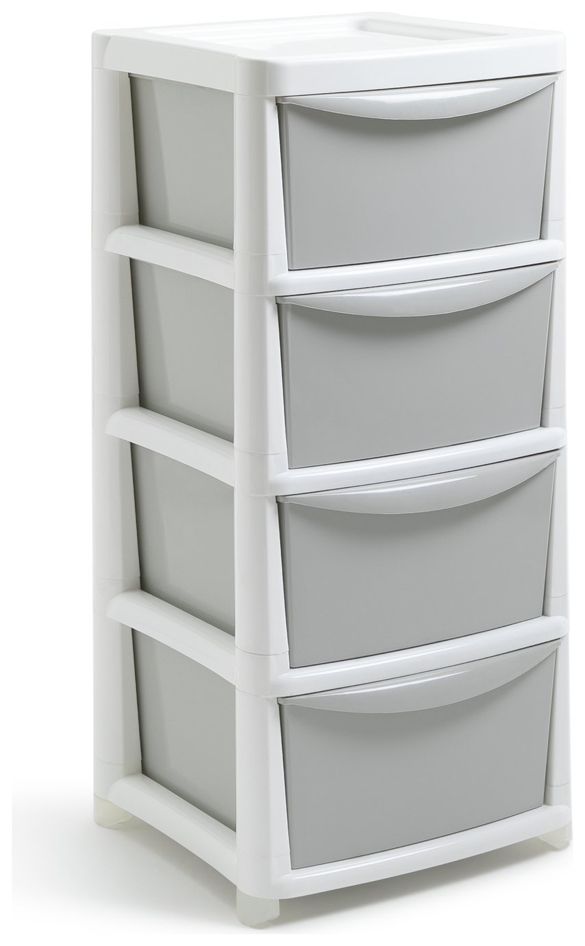 Argos Home 4 Drawer Wide Plastic Drawers - Light Grey